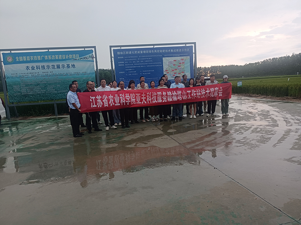 8月16日,院亚夫科技服务赣榆塔山工作站举办水稻田间管理培训观摩会,来自赣榆农业技术推广中心、赣榆区科协有关领导专家,赣榆区各镇种田大户和亚夫科技示范户等60余人参加。